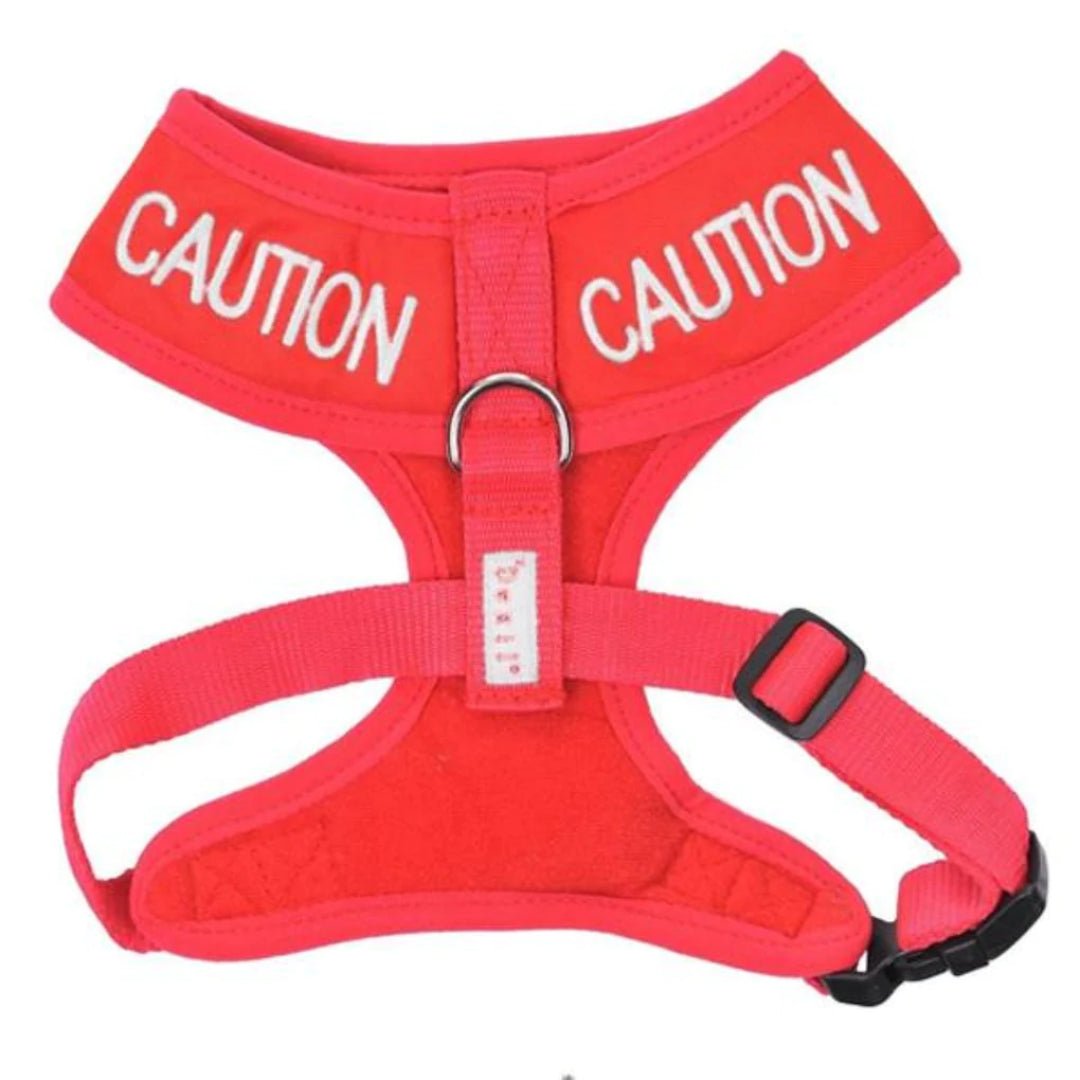 Red Embroidered 'Caution' Dog Vest by Friendly Dog Collars