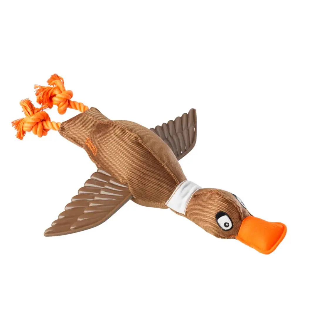 Duck Thrower Dog Toy with TPR Textured Wings is a fun and interactive dog toy designed for maximum engagement. Features a durable canvas body, textured TPR rubber wings, and rope feet. Provides various textures to keep your dog entertained during playtime. Ideal for fetch and tug-of-war games. Perfect for energetic dogs. Reverse of wings can be used as a licking mat, applying their favourite wet food for further enjoyment. Contains squeaker. Perfect for playing fetch.