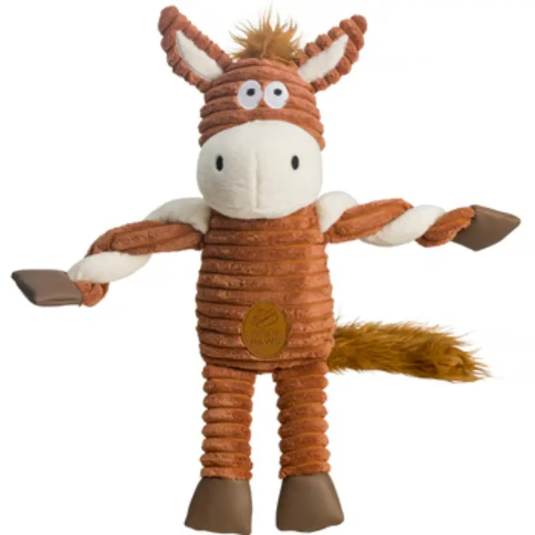 House of Paws horse plush dog toy is made from soft jumbo cord with a squeaker included for fun during interactive play.